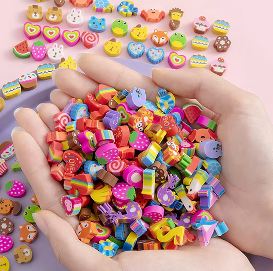 50Pcs/Lot Christmas Cartoon Eraser Cartoon Mini Fruit Animal Love Heart kid gift