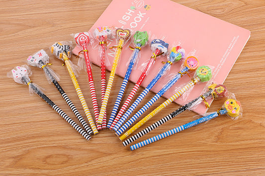 24pcs Animal Eraser Topper Wooden Pencils Cartoon Cute Kid school Supply HB write